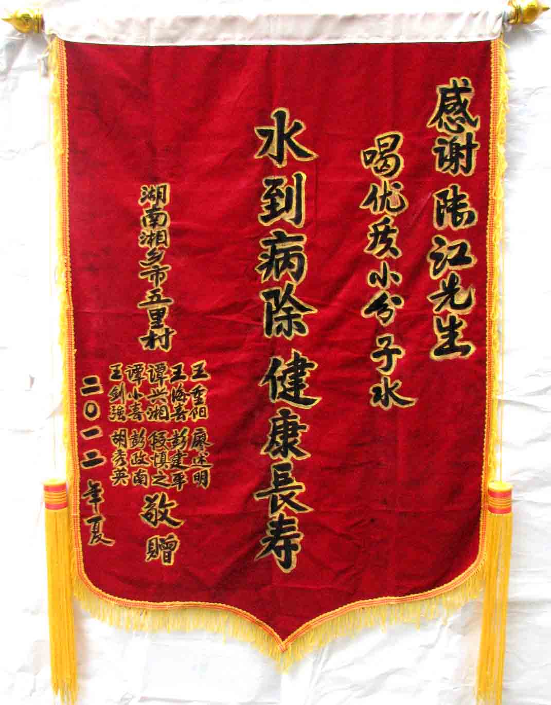 2015年潘志山主動(dòng)寫一篇感想《我以親身實(shí)踐打破了冠心病、高血壓、糖尿病需終生服藥的神話》說堅(jiān)持按發(fā)明人陸?江先生倡導(dǎo)的用已饑方食的方法合理膳食,我的健康狀況越來越好:糖尿病造成的視力下降有了明顯的恢復(fù),末梢神經(jīng)炎導(dǎo)致的指端潰爛現(xiàn)在完全痊愈,痔瘡自從飲用微小分子團(tuán)水半年后就再也沒有復(fù)發(fā)過,氣滯血瘀造成的嘴唇暗紫也漸漸變得紅潤,舌下靜脈黑紫消失,足背的動(dòng)脈由以前的隱約感到跳動(dòng)現(xiàn)在變得清晰有力。[13]潘先生披露的訣竅,一是飲用微小分子團(tuán)水給脫水細(xì)胞補(bǔ)水,二是已饑方食”養(yǎng)生智慧,患者都能做到。